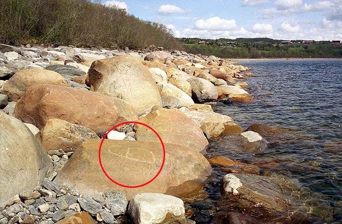 Man kom til at flere av ristningssteinene lå utsatt til, og de ble derfor trukket høyere opp på stranden, slik at de kom til å ligge på tørt land, i kanten av skogen. De ble derfor raskt overgrodd av lav og mose, og ristningene på disse steinene kan være svært vanskelige å se.